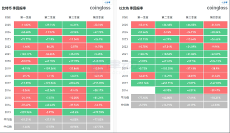 同样,以太坊Q4以来累计跌幅达31.54%,目前仅好于2016年(-39.47%)和2018年(-41.62%)。