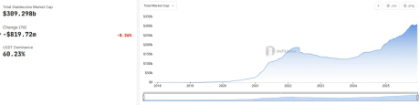 2月20日,据DefiLlama数据,稳定币总市值本周略减0.26%,现报3092.98亿美元,仍维持历史高位。