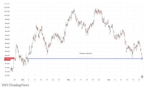 美国美元指数(DXY)周二再次走低,交易价格距离其2025年低点不远。