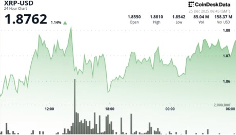 XRP 从 $1.8783 下跌至 $1.8604,维持在 $1.85–$1.91 区间内