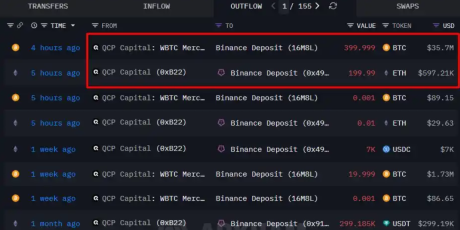 (炒币的软件)QCP Capital向Binance存入400枚比特币和200枚ETH