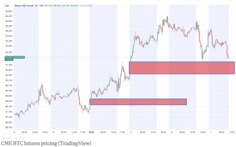 比特币(BTC)跌至略高于91,000美元,可能正面临技术引力,因为芝商所未填补的缺口仍位于当前价格下方。