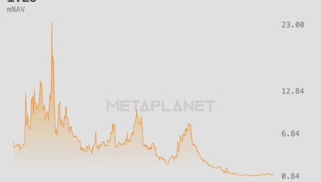 Metaplanet的市净率(mNAV)上升至约1.25,为自去年十月清算危机以来的最高水平。