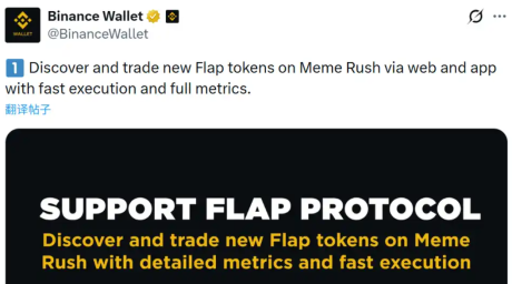 1 月 16 日(10大虚拟币平台),根据官方消息,Binance 钱包 Meme Rush 宣布现已支持 Flap 协议,用户可通过网页和 App 在 Meme Rush 上发现并交易全新的 Flap 代币。(10大虚拟币平台)