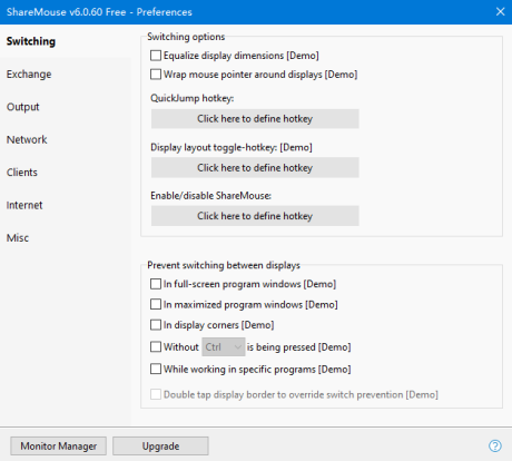 ShareMouse通过您现有的网络连接传输鼠标/键盘操作。