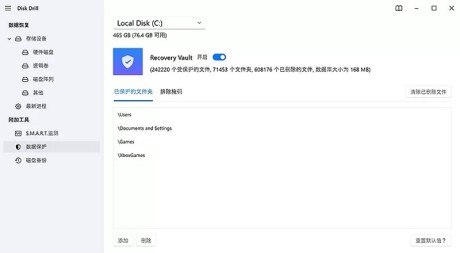 使用Disk Drill你的数据也是被保护的状态。即使你从没有丢失过数据,也要启用恢复保险库。通过为你电脑上删除的文件和文件夹建立一个备份,它可以保护你的文件防止被以外的删除。