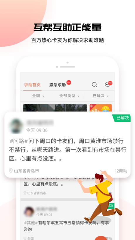 3.【求助专区】卡车人专属的在线求助社区,路上遇到问题、车辆故障问题、保险咨询、法律咨询,这里都有热心卡友和各类专家回答您的问题。