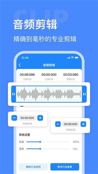 界面布局简洁清晰,核心功能入口明确,剪辑、提取、添加特效等操作步骤简化,无需专业知识与技能,新手也能快速上手创作优质音频。