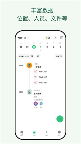 以时间轴形式串联所有记录,按时间顺序清晰呈现生活轨迹,搭配日历视图切换,让回忆查找与回顾更具画面感,一目了然追溯过往点滴。