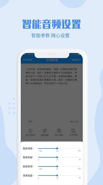 滴答配音app提供专业的技术支撑为大家带来非常不错的手机配音工具,支持语音转文字、插入特效音等多项操作。无论是学习还是工作都能很好的满足用户的使用需求,随时添加背景音乐快速进行合成。感兴趣就来试试吧!