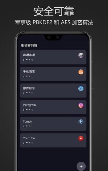 采用军事级 PBKDF2 和 AES 加密算法。数据始终保密,即使对密码键盘也是如此