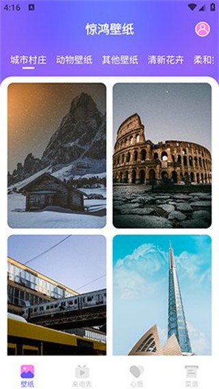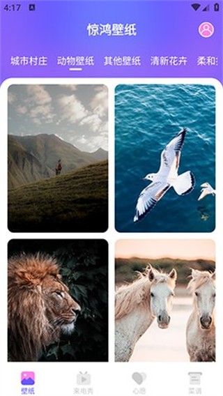 1、进入惊鸿壁纸后,点击清新花卉标签,可切换到对应风格的壁纸列表。