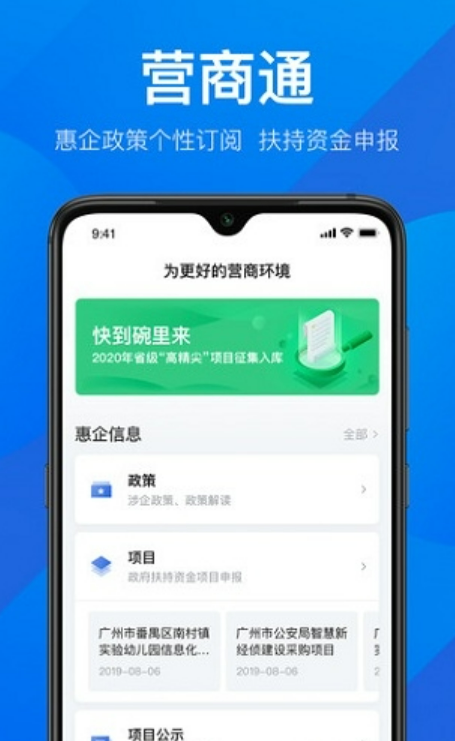 广东省涉企移动政务服务平台,面向全省1300+万商事主体提供涉企政务服务,政策服务,公共服务和信息服务,提升政府的服务能力和企业的市场运作效率,助力营商环境持续优化。