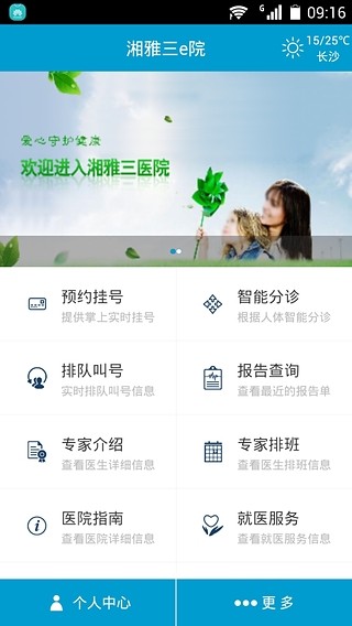 “湘雅三‘e’院”手机APP作为一种医疗便民服务,是结合移动计算技术的医疗数据化体系,使得服务环节能够涵盖院前、院中、院后三个阶段形成闭合,其包括三大平台,25个功能,即大众平台、医护平台、管理平台,功能方面包括院前咨询、预约、问诊、宣教等,院中智能提醒、结果实时查询、网上支付、实时会诊、等,院后随访、跟踪、健检、身体智能分析等,满足不同层面、不同用户的信息需求,今后随着医疗的发展,还将推出更多便捷APP升级版本,不断更新,不断完善。