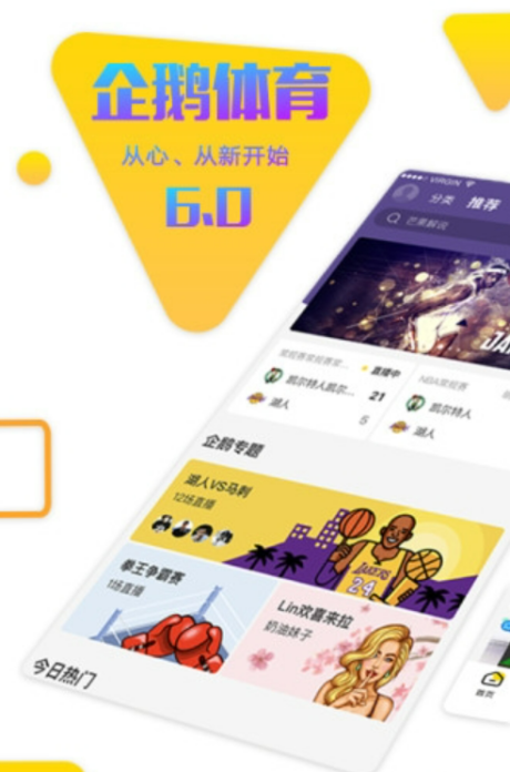 企鹅每天同步直播高清热门赛事,NBA篮球、中超、英超、西甲、德甲、意甲、法甲、NFL(美国国家职业橄榄球联盟赛)、WWE(美国职业摔角联盟赛)、世界杯、美洲杯、欧洲杯、奥运会、台球职业联赛、中式八球国际大师赛、拳击、排球、网球、斯诺克、健身、极限运动、武术、街舞、钓鱼、跑步等50多种运动项目16000多场热门赛事直播和视频,让你24小时看不停!