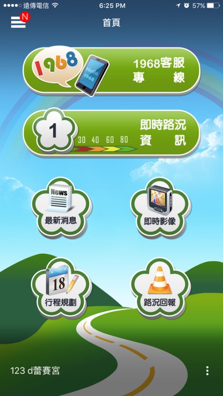1.开车最糟糕的事就是堵车。有了1968,我们可以立即知道台湾各高速公路的当前路况信息,并会用颜色来表示当前路况。绿线表示目前路况相当平稳,红色或紫色表示交通拥塞。