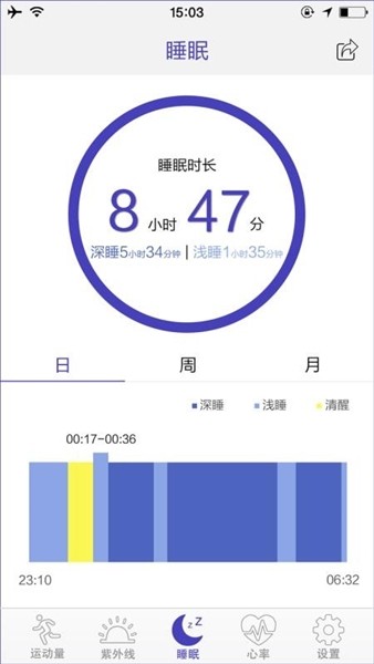 睡眠质量追踪:自动记录夜间睡眠时长,分析深睡占比及清醒次数分布规律