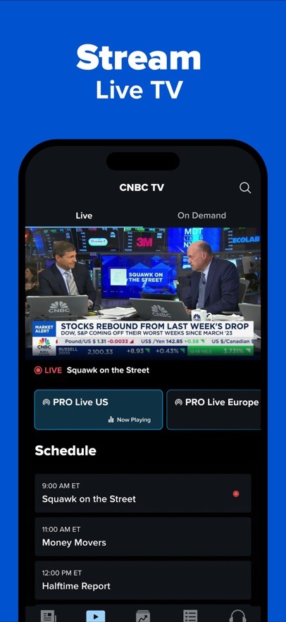 2、每日免费电视直播预览:观看美国消费者新闻与商业频道直播电视流的每日免费预览。