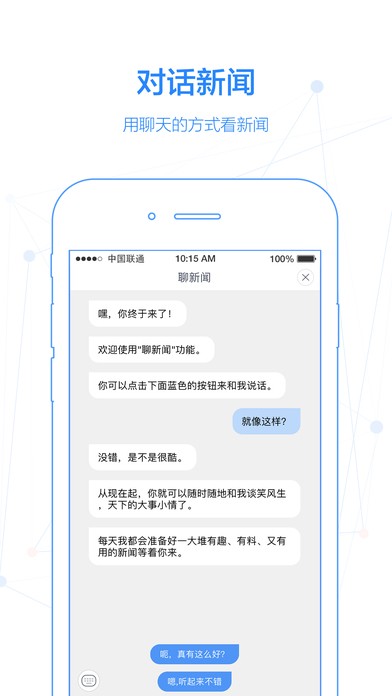 看累长篇大论的文章?全新聊新闻功能,将每天有趣、有料又有用的新闻内容,编辑成对话形式,让你用聊天的方式看新闻。