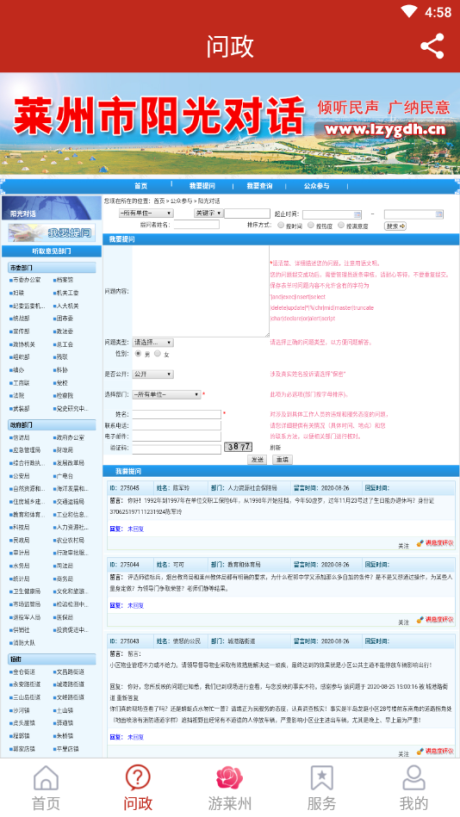 3. 政务办理:在线查询政策、预约办事服务。