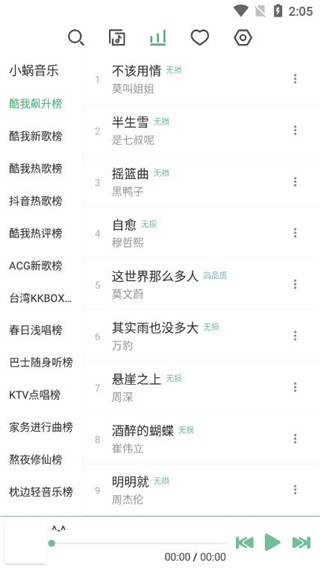3、各大专业的音乐榜单能够让玩家选择,玩家可以自由的选择并且在这里找到。