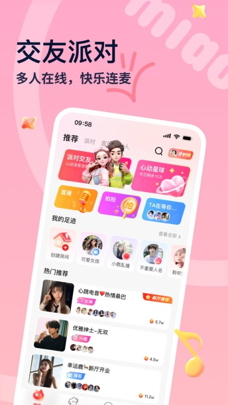 支持社交功能,玩家可以拜访好友的喵喵星球。