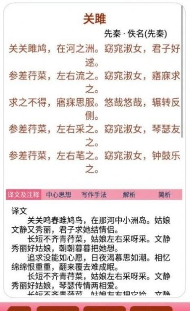 这款app最突出的特点在于其专业的诗词解析功能。每首诗词都配有详细的注解和译文,即使是初学者也能轻松理解作品内容。软件提供了多种便捷的搜索方式,用户可以按朝代、作者或作品分类进行检索,还能将喜爱的诗词加入收藏夹随时复习。在内容方面,软件收录了《唐诗三百首》、《楚辞》、《全唐诗》、《全宋词》等经典典籍,堪称一部移动的诗词百科全书。