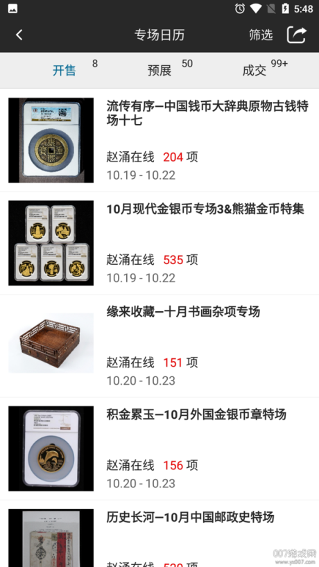 赵涌在线官网版是一款专注于收藏品交易的综合性平台软件,为用户提供便捷的在线拍卖、交易和信息查询服务。该软件涵盖邮票、钱币、字画、古籍等多种收藏品类别,集展示、竞拍、交易于一体,满足收藏爱好者和投资者的多样化需求。通过赵涌在线官网版,用户可以随时随地参与竞拍、查看藏品详情、管理个人收藏,并享受专业鉴定和交易保障服务。平台界面简洁友好,操作流畅,致力于为用户打造安全、高效、透明的收藏品交易体验。