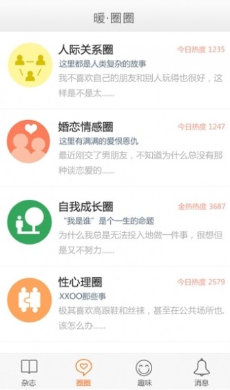 暖心理app是一款内容丰富的资讯阅读应用,通过它,可查看最新的杂志,让自己每天充满能量,可收听专业的催眠师录制的减压音频,让您身心放松,轻松入眠,更好的释放压力,还有20种神秘梦境的心理学解释,科学解梦,可参与人际关系、婚恋情感圈等,了解生活中更多的相关事情,暖心理,只愿,你被这个世界温暖相待。