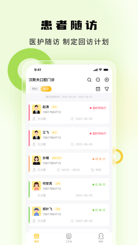 完善的医护随访功能,可自定义回访计划,及时跟进患者康复情况