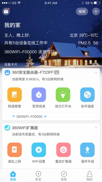 《360智能管家》是“360路由器管家”改名而来或者说是升级而来。为广大360安全路由器用户们提供一个特色功能,设备自动发现快速入网方便而。《360智能管家》可以智能硬件一站式管理,能帮助用户随时掌控多种智能设备,尽享安全与便捷的智能生活新体验。
