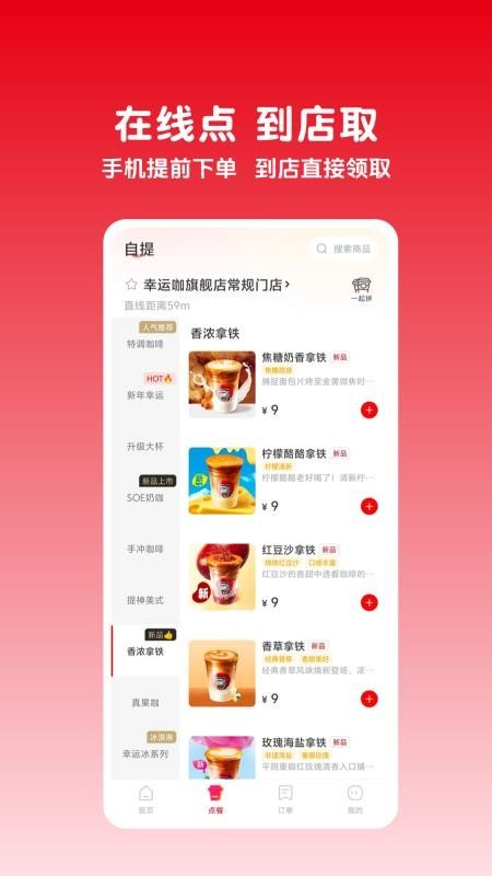 通过线上点餐就可以提前预订咖啡饮品,从而能够到店自取购买的咖啡;