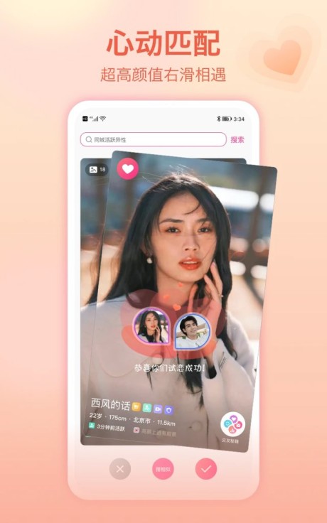 浏览推荐:系统会根据你的资料推荐匹配对象,滑动浏览并选择“喜欢”或“跳过”。