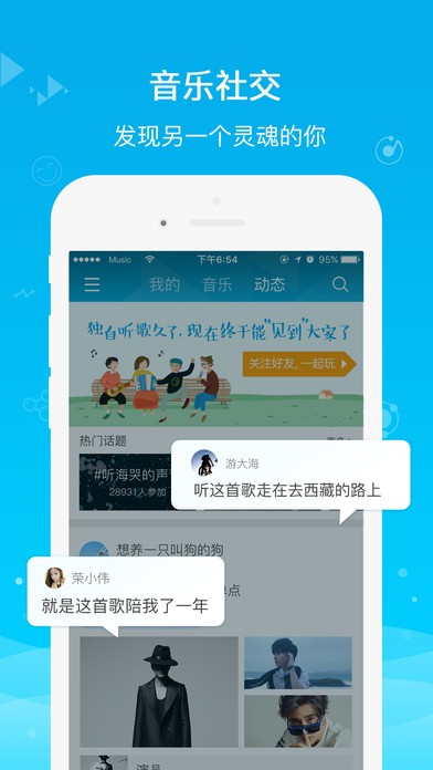 2、音乐社交:从陌生到老铁,只一首歌的距离;