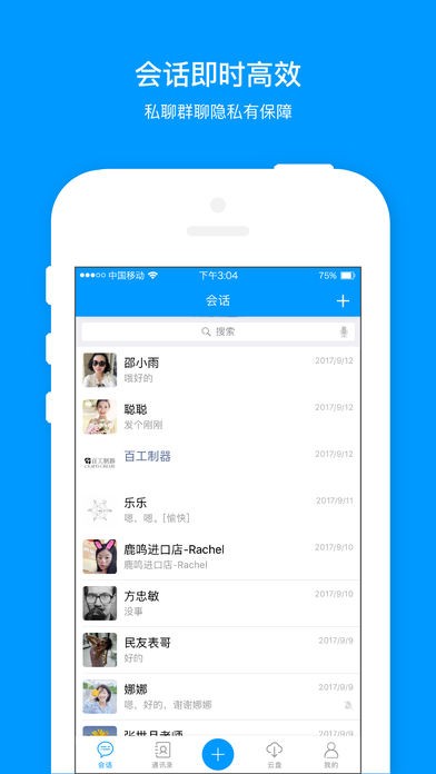 会话功能:会话即时高效,私聊群聊隐私有保障