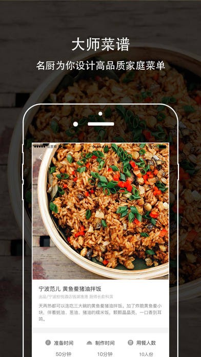 3、【大师菜谱】和名厨、专家一起设计独家、时髦、新鲜、易于操作的家庭菜单。用文图或者短视频的方式进行呈现。为追求高品质家宴菜谱的资深用户提供独一无二的选择。