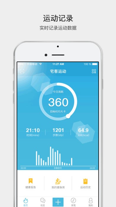 3、宅客运动引入了HealthKit,实时同步用户的日程步数,更好的展示用户的实际运动量;