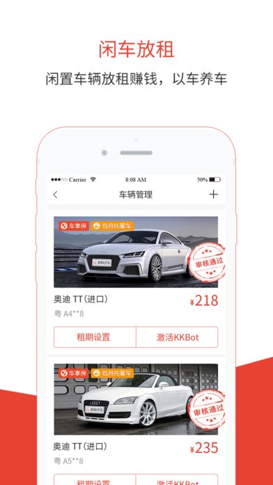 1、【共享租车】通过APP,一方面,广大车主可以把闲置车辆共享放租,赚取收益;另一方面,租客根据手机定位就近租车,价格便宜30%,出行更便捷!