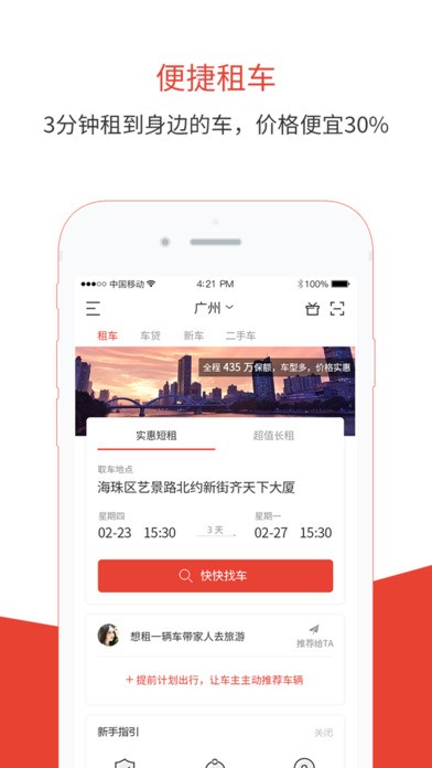 2、体验优化,让您享受更人性化的租车体验;